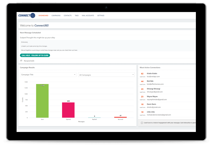 Connect 365 is a client attraction and sales automation tool that offers a more personal, intimate experience to the recipient. It cuts through the noise of the modern email inbox and stands out in a sea of “marketing” and “advertising” emails that your prospects receive on a daily basis.