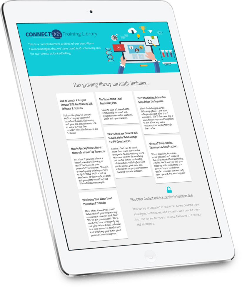 Why? Well, in full transparency, my team and I understand that the more success that you have, the longer you’ll use Connect 365. That means that the leads, sales, and clients you get will have a direct impact on how long we work together. It’s a win-win.